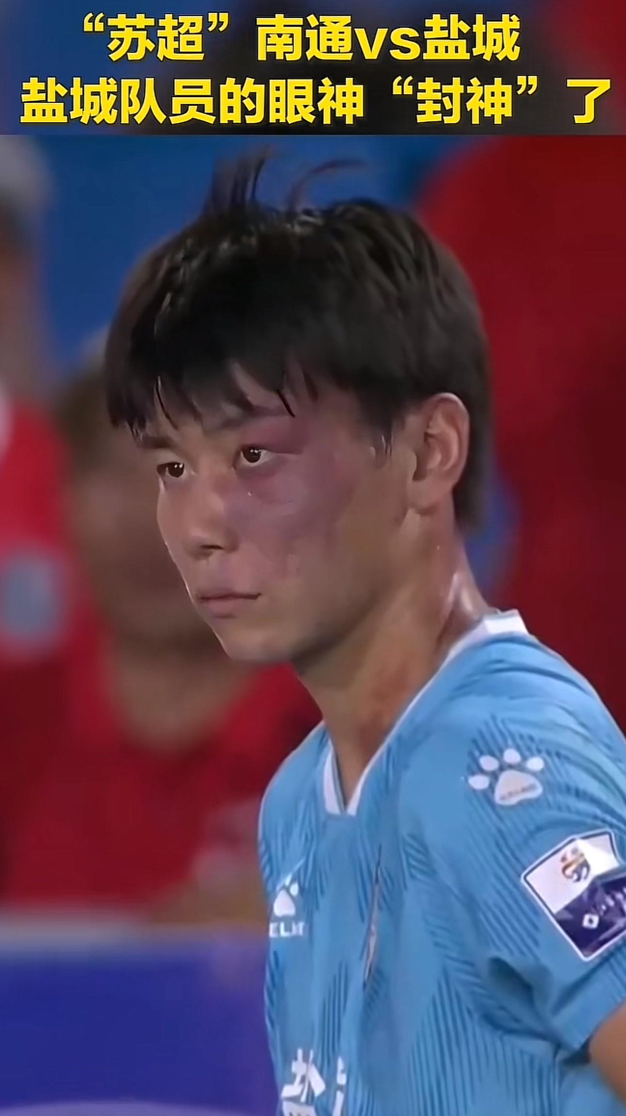 此前“苏超”南通队vs盐城队的比赛里,庞智超带有“杀气”的眼神也上了央视新闻。